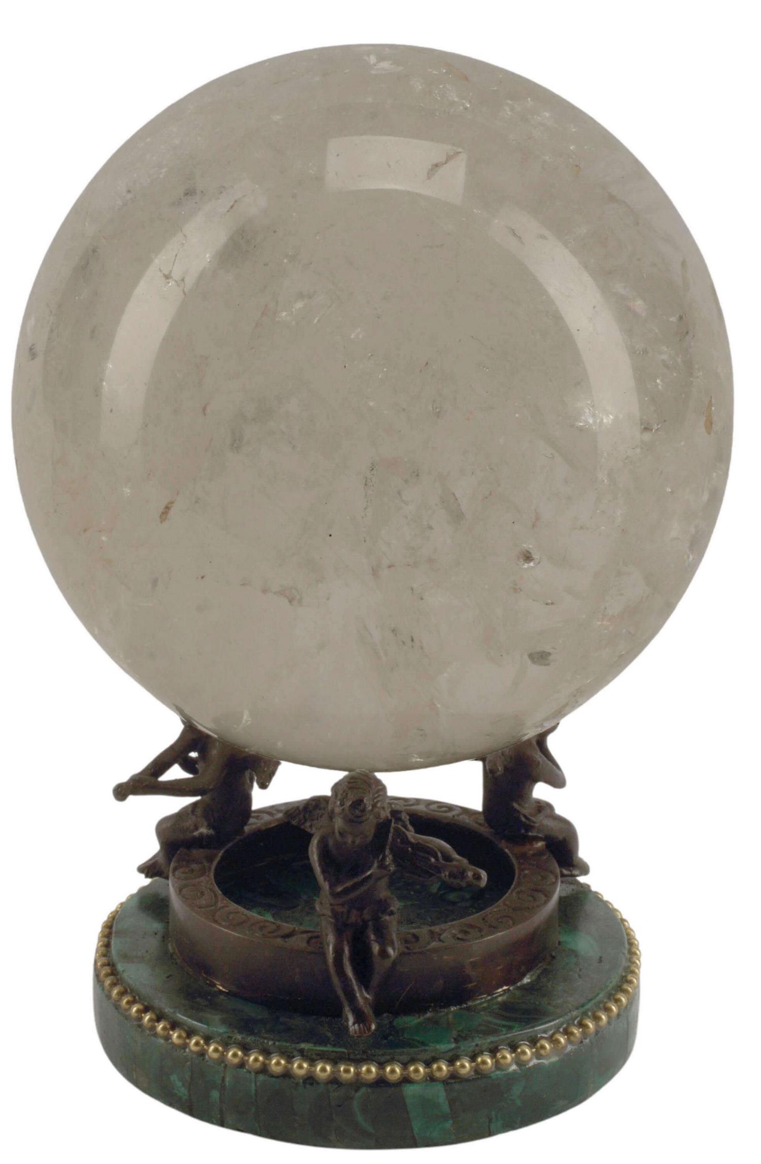 ROCK CRYSTAL SPHERE ON MALACHITE STAND