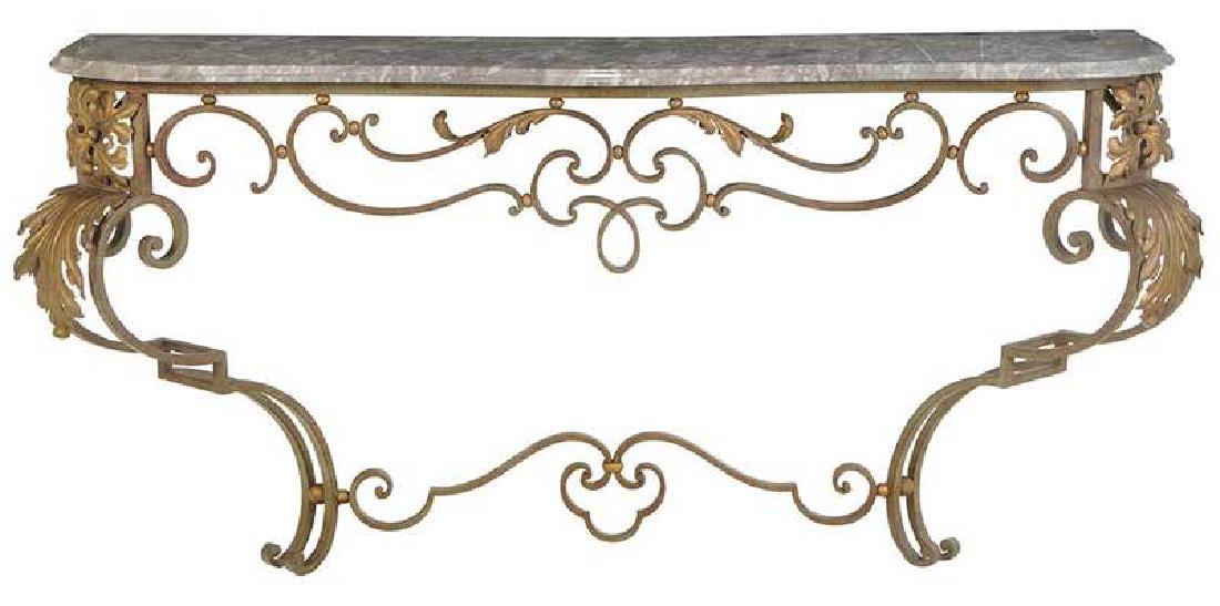 Rococo Style Wrought Iron Marble Top Console