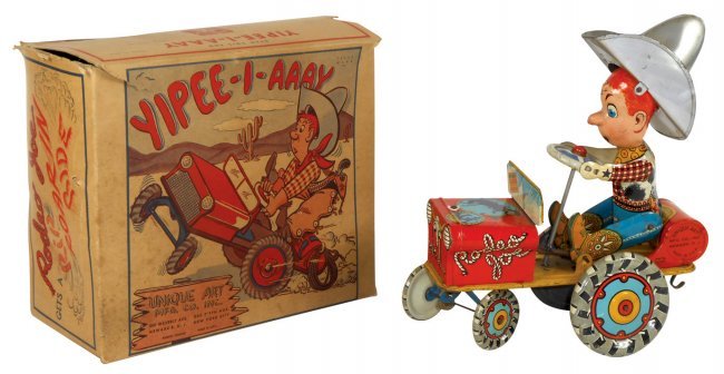 Lot 4 Pressed Steel Toy TrucksMar 07, 2026PAIR OF VINTAGE TOY WAGONS6 hrs LeftToy TrucksFeb 21, 2026Toy TrucksFeb 21, 2026Toy TrucksFeb 21, 2026Phillip Niedermeier Tin Litho Windup racing cars With Orig Box 1950's12 hrs LeftToy Rodeo Joe, litho on tin mechanical wind-up w/key, Unique Art Mfg Co., working mechanism w/ass...Rich Toys Horse and Wagon ToyFeb 21, 2026Vintage Tin Litho Rodeo Joe / Pioneer Spirit ToysFeb 15, 2026Unique Art Tin Litho Gi JoeFeb 21, 2026BOXED MARX JUMPING JEEPFeb 27, 2026Tin Litho Windup GI Joe Bouncing Jeep 1940 Works!12 hrs LeftBOXED STRAUSS & MARX BALKING MULESFeb 27, 2026Wyandotte Toy CarFeb 21, 2026Toy Truck, Texaco Tanker in orig box, plastic/steel, Park Plastics Co., Linden, N J, c.1960-1970s...Dinky Toys, Joe's Car 102Feb 27, 2026