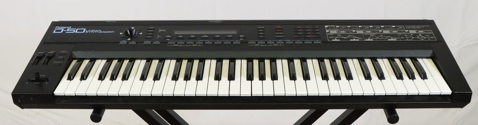 SoldRoland Juno SynthesizerProgrammable polyphonic synthesizer. With M-64C expandable Memory cartridge. Serial # 625201. Model JU-2. Sustain pedal. Power cord. Music holder and floor stand included.See Sold Price