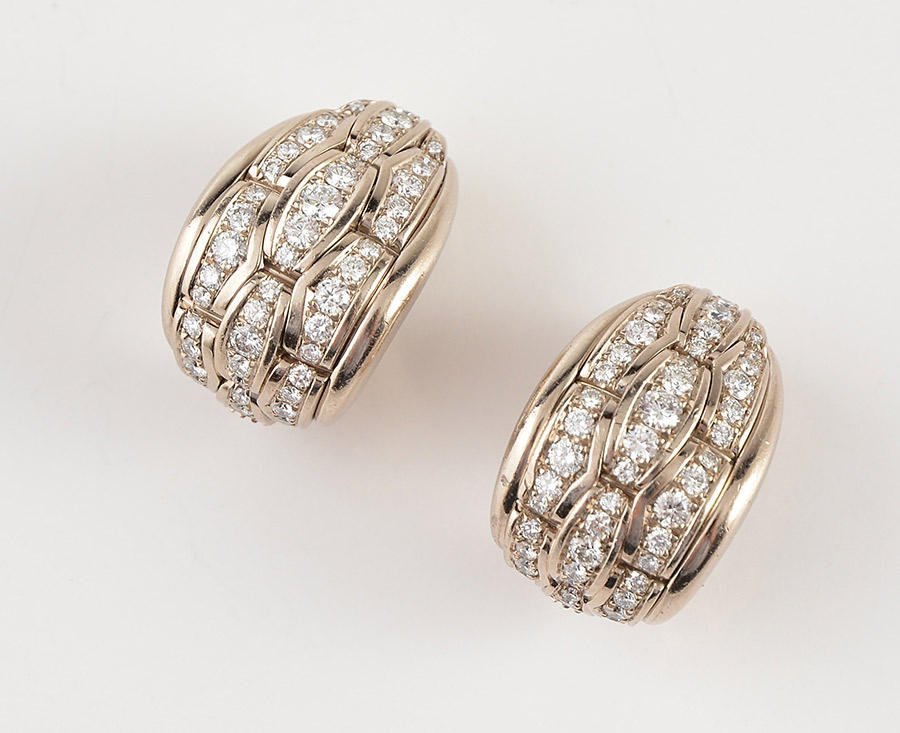 1.48ct. natural round diamond dome wave earrings 18kt platinum**
