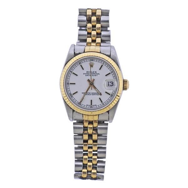 SoldRolex Datejust 18k Gold Steel Lady's Watch ref.METAL: 18k Gold/ Stainless Steel. MEASUREMENTS: Case - 26mm, jubilee bracelet in good condition - will fit approx. 7.25" wrist. Silvered dial with gold stick markers. MOVEMENT: Automatic, workingSee Sold Price