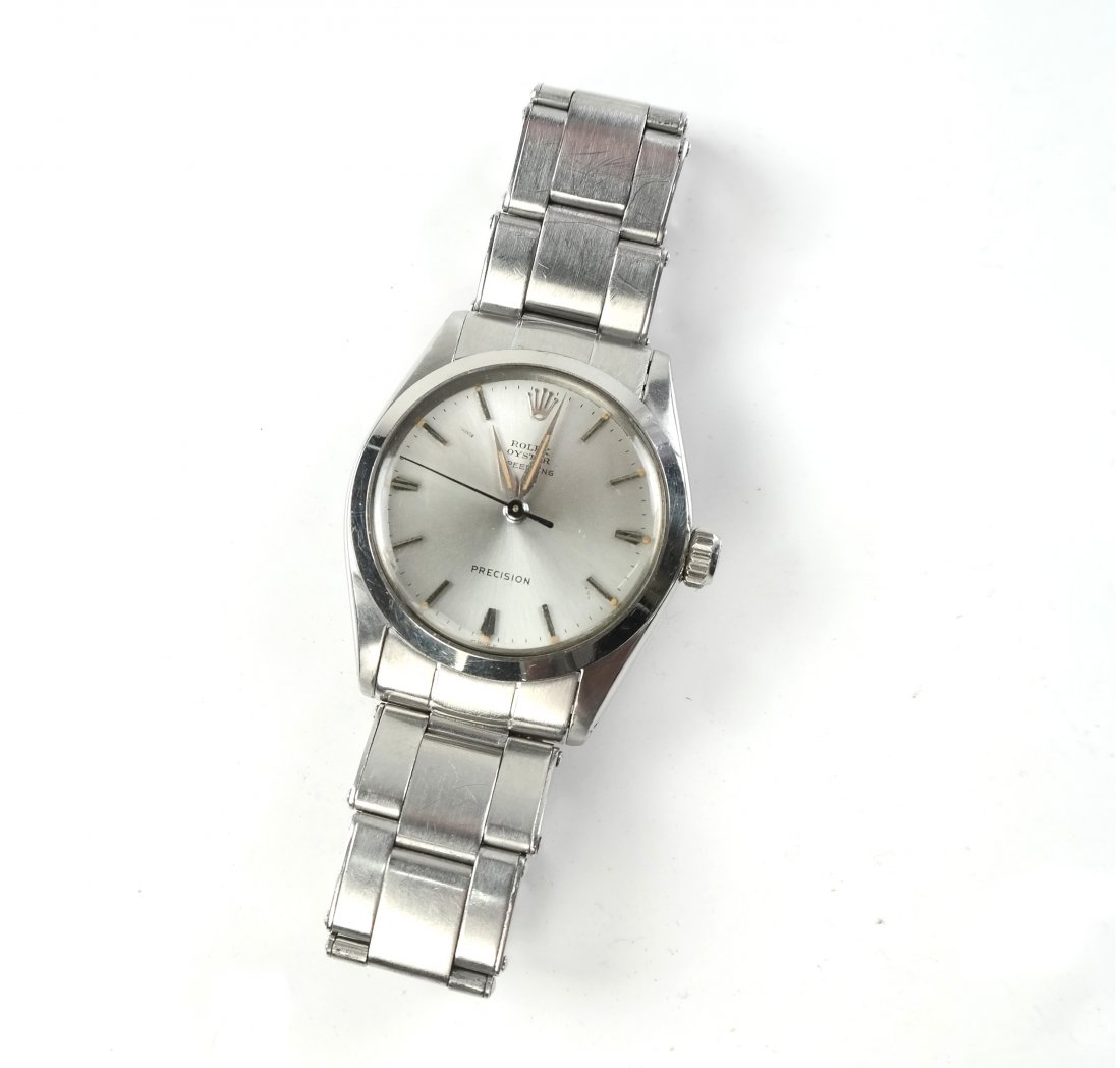 SoldRolex Oyster Speedmaster WatchMid-size Rolex stainless steel watch with bracelet band. #6430 CAL 1215 (1951-52).See Sold Price