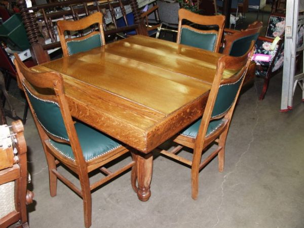 Sold5 PC MID CENTURY FRENCH PROVINCIAL GAME TABLE WITH 45 PC MID CENTURY FRENCH PROVINCIAL GAME TABLE WITH 4 CHAIRS, GILT EMBOSSED LEATHER TOP TABLE, 4 CHAIRS WITH NAILHEAD TRIM, TABLE IS IN VERY GOOD CONDITION, CHAIRS ARE IN SOLID CONDITION BUT LEATHER ISSee Sold Price