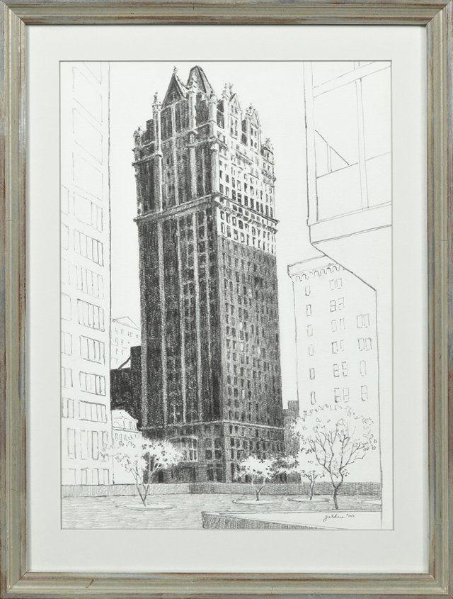 Rolland Golden, "New York Skyscraper," 2000, graphite,