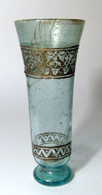 Roman footed beaker with gold leaf decoration