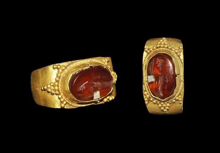 Roman Gemstone with Bull in Gold RingMar 04, 2026Greek Gold Ring Engraved with Goddess NikeMar 03, 2026Roman Gold Ring with Bust of the God SerapisMar 03, 2026Roman Gold Ring with GarnetsMar 03, 2026Roman Gold Ring with Fortuna GemstoneMar 04, 2026Byzantine Gold Marriage Ring with BustsMar 03, 2026Large Roman Gold Ring with Carnelian Gemstone with Bust of the Goddess Athena and InscriptionMar 03, 2026Roman Vase Gemstone in Gold RingMar 04, 2026'The Dummer' Medieval Knight's Hospitaller Gold RingMar 03, 2026Roman Gold Marriage Ring with 'Dextrarum Iunctio' CameoMar 03, 2026Eastern Roman Gold Ring with Rock Crystal Gemstone of Asclepius the God of MedicineMar 03, 2026Roman Gold Ring with Jasper Gemstone of Fountain and DolphinMar 03, 2026Roman Gold Ring with Dolphins Supporting BeadsMar 03, 2026Roman Gold Ring with 'Eye' Gemstone with Engraved BeeMar 03, 2026Roman Gemstone of Hercules with Ceryneian Hind in Gold RingMar 04, 2026Roman Heliotrope Gemstone with Ibex and Two Erotes in Gold RingMar 03, 2026