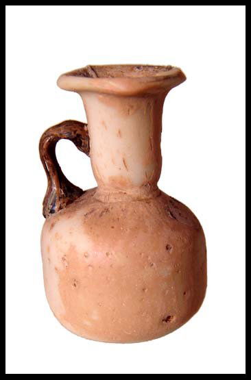 Roman small white glass single-handled vessel