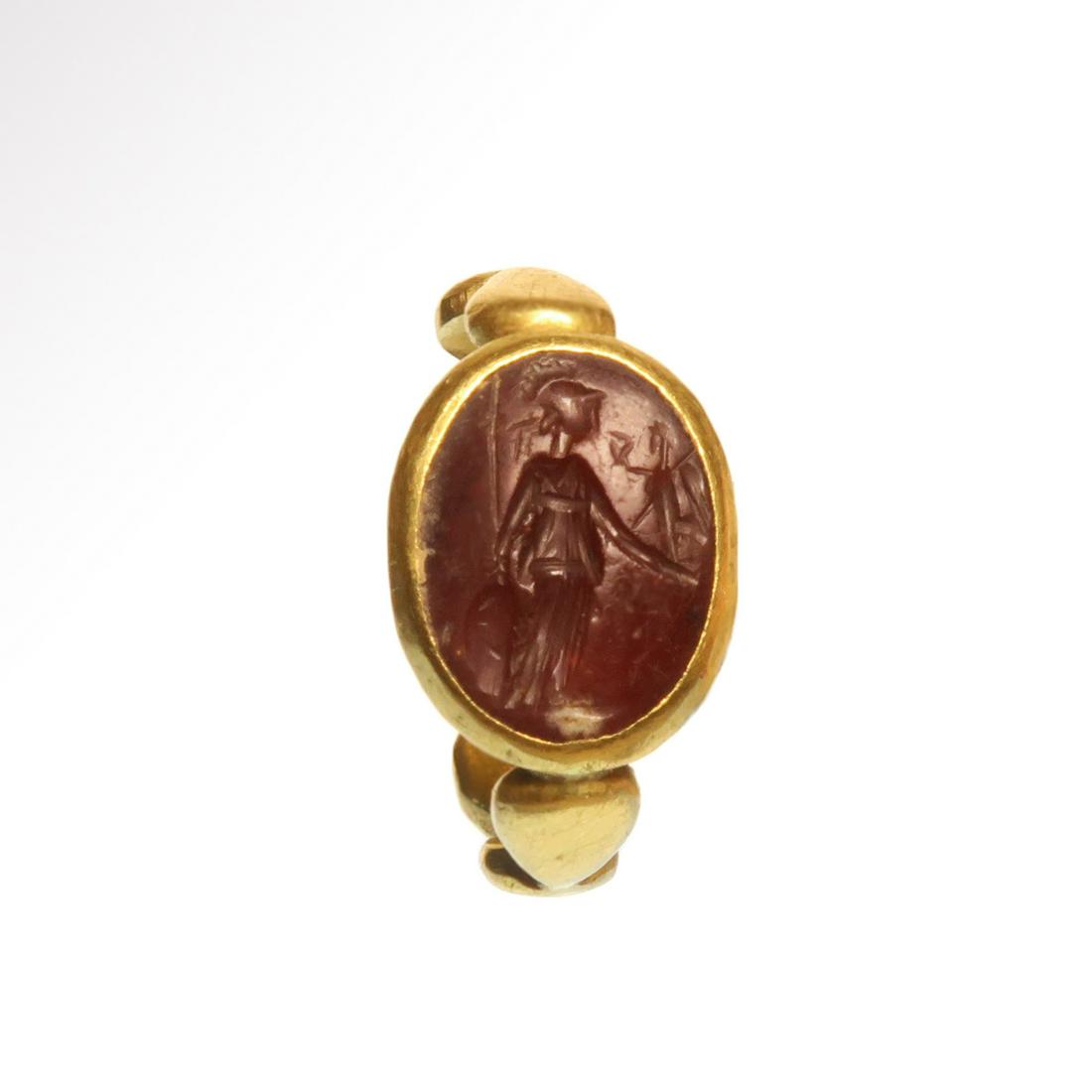 Roman Solid Gold Ring with Cornelian Minerva Intaglio,