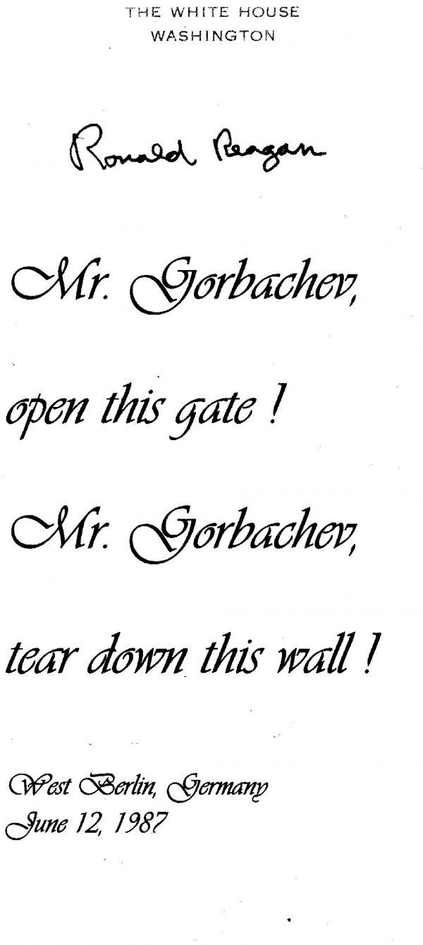 Ronald Reagan Signed "Tear Down This Wall" doc