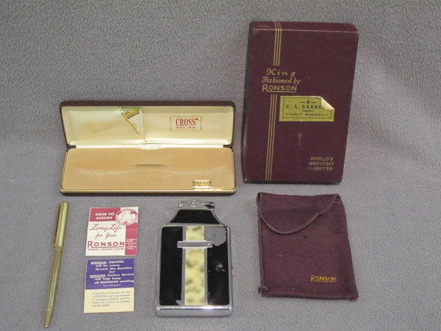 Ronson table lighter & Cross pens