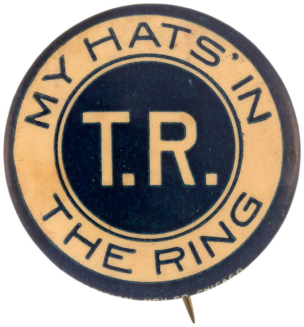 ROOSEVELT "MY HATS' IN THE RING" 1912 BUTTON.