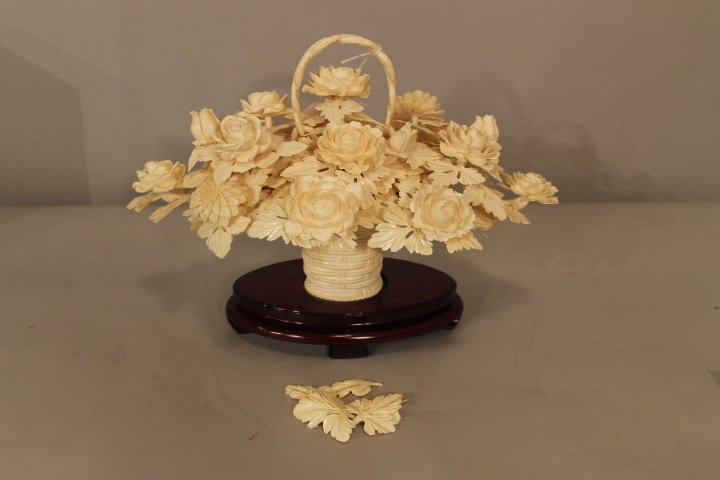 Vintage Chinese Carved Jade & Stone Flower Basket