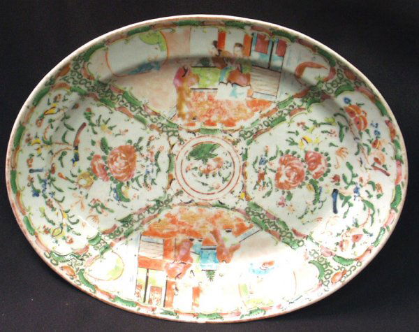 SoldChinese Rose Medallion Oval PlatterChinese Rose Medallion porcelain oval platter, c 1840, unmarked, 16-3/4" x 13-3/8", very good conditionSee Sold Price