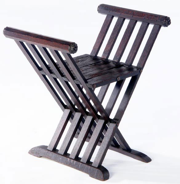 ROSE VALLEY Folding stool carved with rosettes. Br