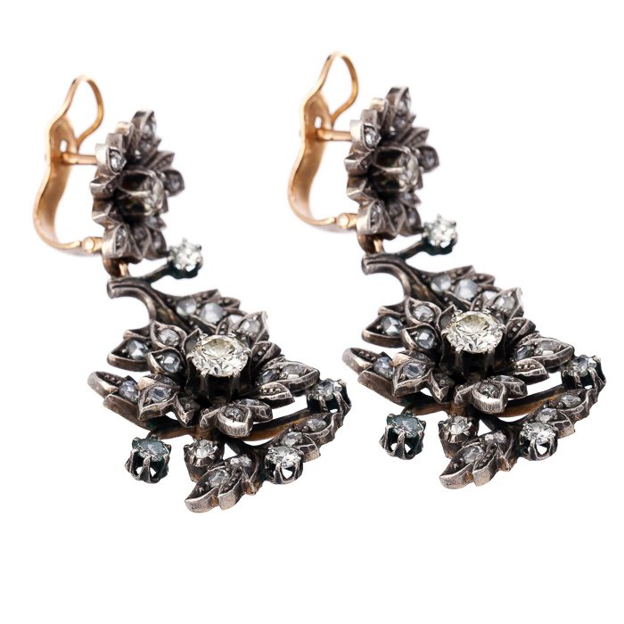 Antique 14k Gold Silver Floral Drop Earrings with 0.44ct Old Mine Cut DiamondsBidhaus4.2(840)$1003 days Left
