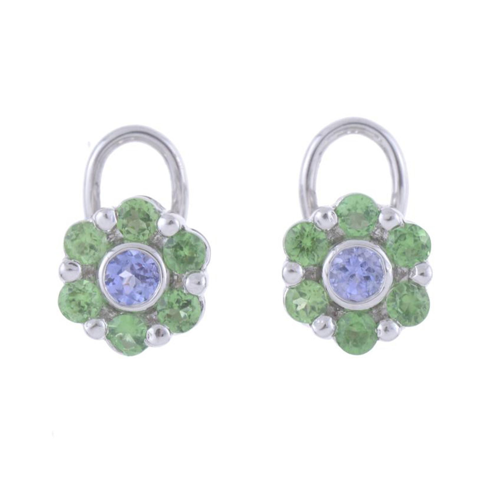 ROSETTE EARRINGS WITH GREEN AND BLUE TOPAZES.