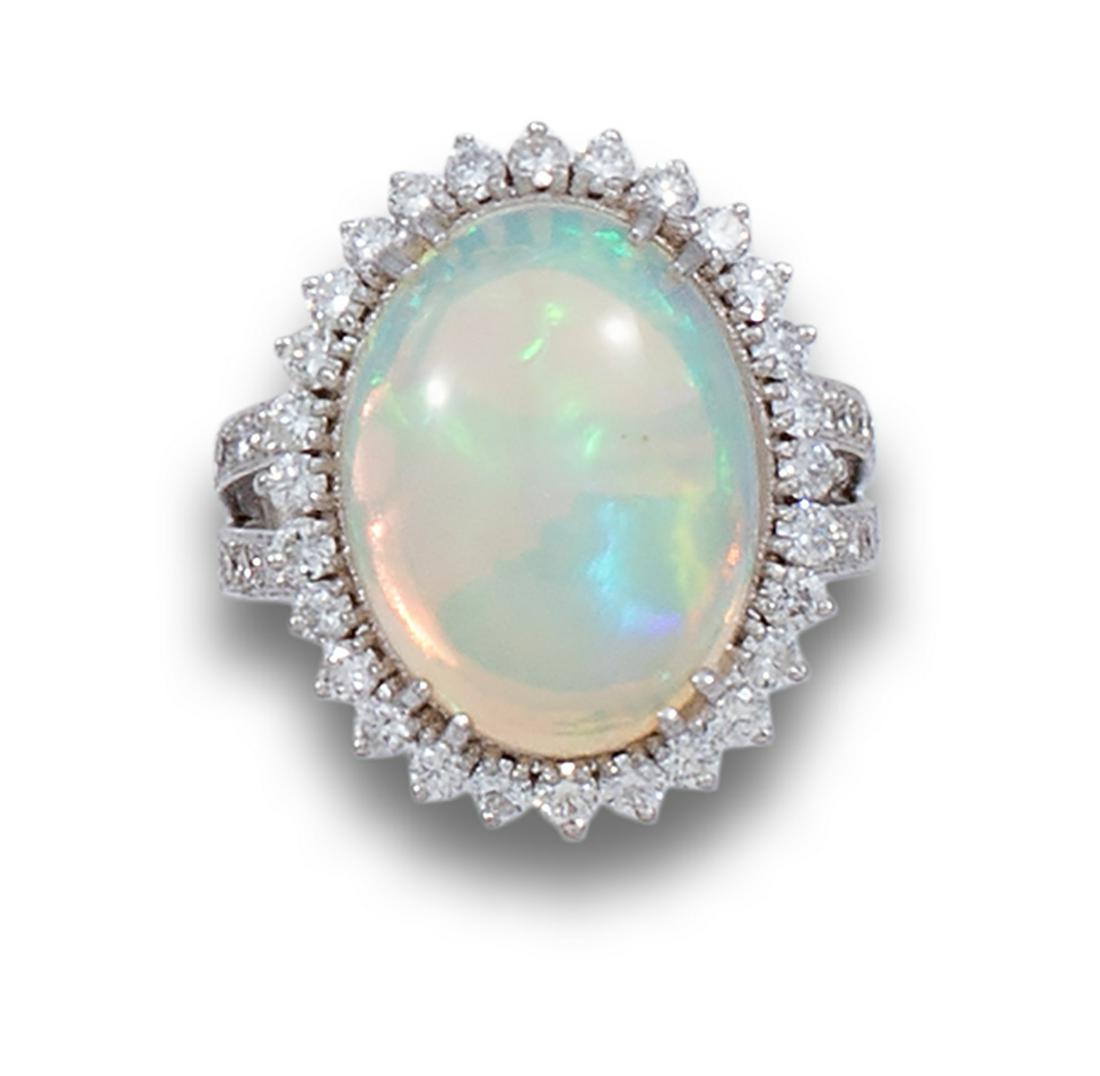 Entourage ring. 750 white gold with an opal cabochon and diamonds.Auktionshaus Schreiber4.3(13)€4202 days Left