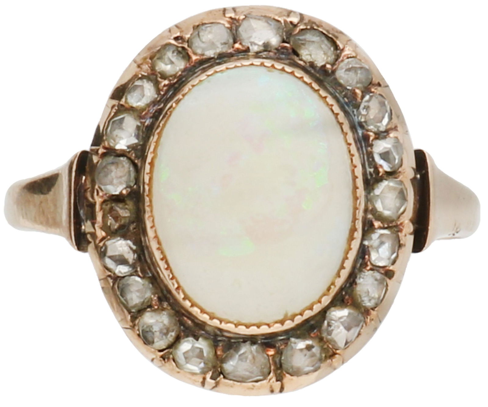 Rosette Ring Rose Gold, Diamond And Opal 14 Ct.