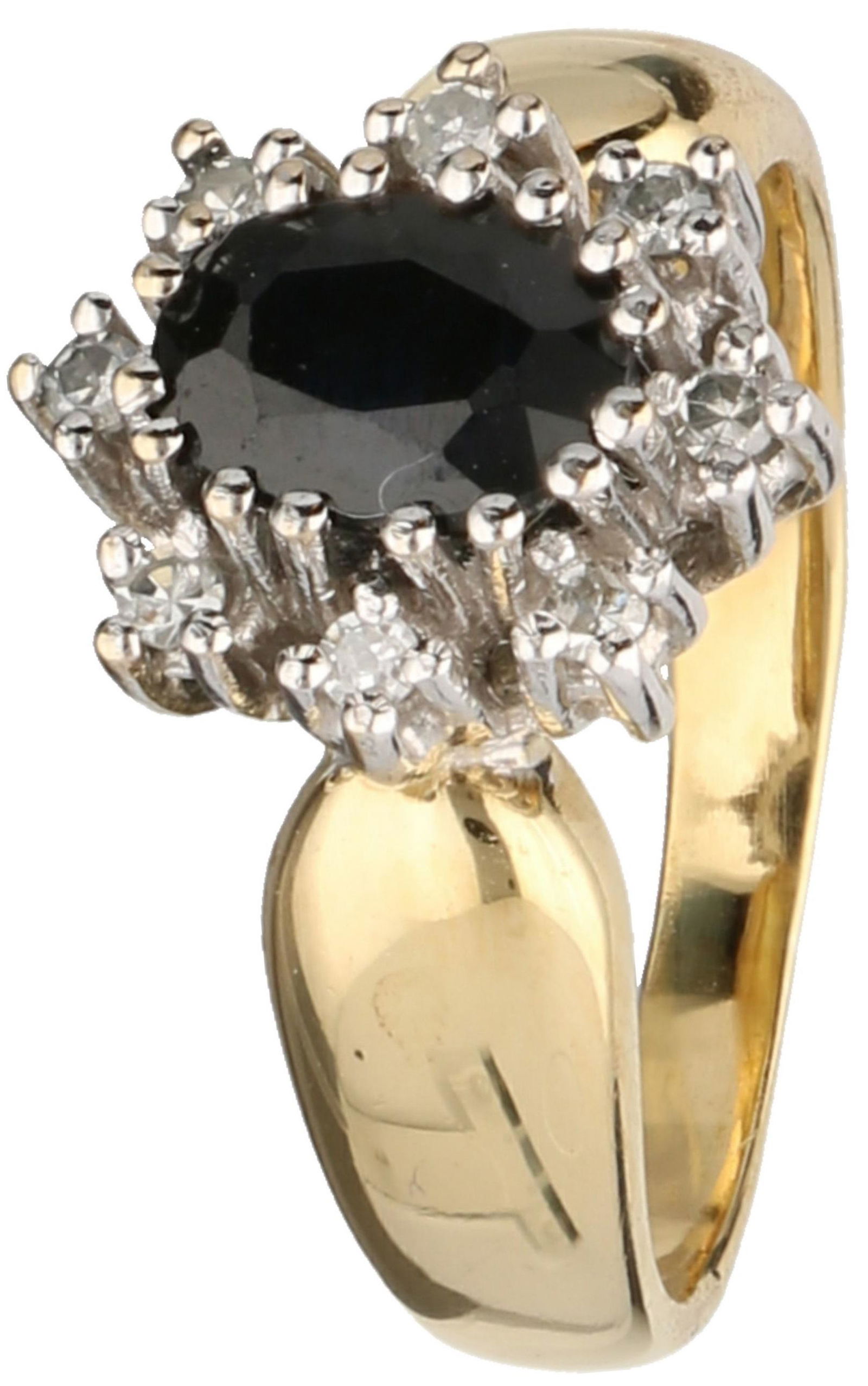 Rosette ring yellow gold, approx. 0.08 ct. diamond and