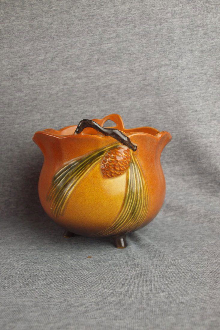 Roseville brown Pinecone footed planter, 458F-5"