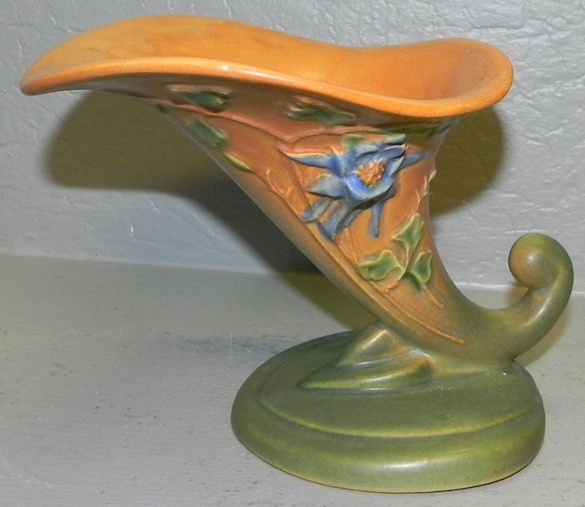 Roseville cornucopia vase in Columbine pattern.