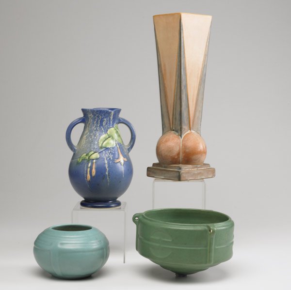 Great Kitchen Ware Lot and Vases Inc. Teapot, Napkin Holder and VasesMar 02, 2026Lot 2 Vintage Blue & Green Ceramic Bud Vases2 days LeftLot of porcelain (4x)1268 Lots AwayLot of (3) Art Pottery Pieces Roseville & Van BriggleMar 15, 2026Small (4) Pottery and Wood VesselsFeb 25, 2026Roseville Arts and Crafts Monticello Vases (2)Mar 07, 2026Two Roseville Primrose vasesFeb 25, 2026Roseville Thornapple Dawn Rosecraft Blue Green Vintage Pottery VasesMar 01, 2026Roseville Weller Zanesville Pigeon Forge Rosemeade Vintage Pottery VasesMar 01, 20268 Vintage Art Pottery Pieces Including Red Wing and RosevilleRoseville Thornapple Vase #812 and Moss Vase #773, 1930'sMar 05, 2026Hull Vintage Art Pottery Blue Wall Pocket Vases Green BowlMar 01, 2026Roseville Pot and VaseMar 05, 20264 PC. FULPER ART POTTERY6 days LeftROSEVILLE MAGNOLIA BLUE CANDLEHOLDERS & EWERMar 07, 20266pc Collection of Miniature Pottery Jugs and Vessels2 days Left