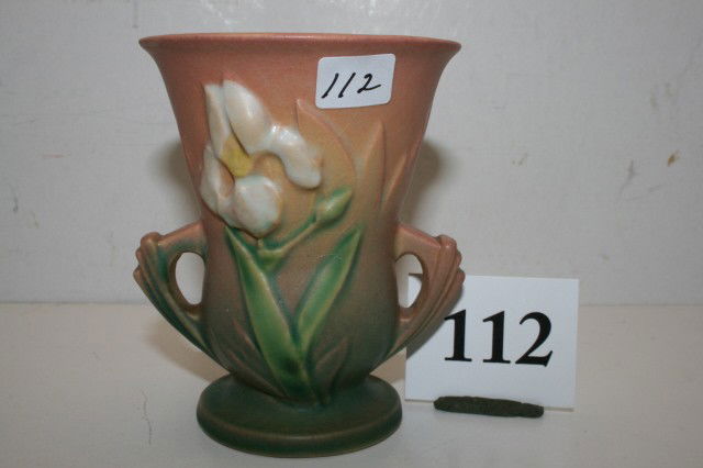 Lot of (4) Roseville Art Pottery VasesMar 15, 2026A Rookwood Iris Glaze Vase by Fred RothenbuschRoseville Iris Blue 1939 Vintage Art Pottery Ceramic Vase 921-8Mar 01, 2026Roseville Iris Pink 1939 Vintage Art Deco Pottery Ceramic Vase 917-6Mar 01, 2026Roseville Thornapple Vase #812 and Moss Vase #773, 1930'sMar 05, 2026Roseville Rozane VaseMar 05, 2026Roseville Columbine Pink 1941 Vintage Art Pottery Ceramic Vase 14-6Mar 01, 2026Roseville Cherry Blossom Vase 1933Mar 05, 2026Roseville "Freesia" Fan Vase 200-7 Circa 1945Mar 07, 2026Roseville Pinecone Pot and Teasel VaseMar 05, 2026ROSEVILLE Pottery Iris Blue Jardiniere 358-6"Mar 28, 2026Roseville Sunflower Vase 1930Mar 05, 2026Roseville Teasel Vase #884 1936Mar 05, 2026Roseville Pine Cone Blue 1935 Vintage Art Pottery Ceramic Flower Vase 705-9Mar 15, 2026Roseville Clematis Blue 1944 Vintage Art Pottery Ceramic Cornucopia Vase 192-5Mar 01, 2026Roseville Blackberry 1932 Vintage Art Pottery Ceramic Vase 575-8Mar 15, 2026