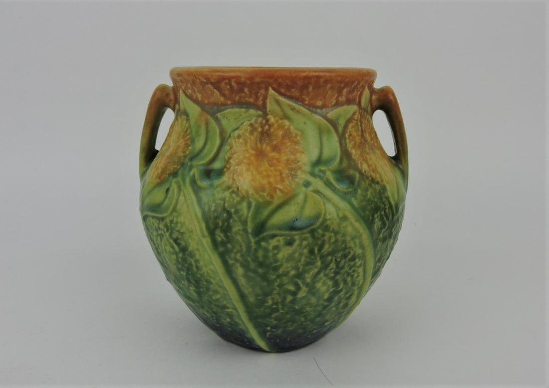Lot of (4) Roseville Art Pottery VasesMar 15, 2026Roseville Sunflower Double Handle Vase 1930, 5 1/2" Tall5 days LeftRoseville Sunflower Double Handle Vase, 5" Tall5 days LeftRoseville Sunflower Vase 1930, 5 1/4" Tall5 days LeftTwo-Handled Vase, Unmarked Roseville Art PotteryMar 21, 2026Roseville Sunflower 1930 Art Pottery Broad Shouldered Ceramic Vase 492-10Mar 15, 2026Roseville Pottery "Sunflower" Vase and Bowl (2)6 days LeftRoseville Blackberry Vase 1933, 5" Tall5 days LeftROSEVILLE POTTERY JONQUIL PATTERN REPLICA VASE VINTAGE ANTIQUE15 hrs LeftRoseville Blackberry 1932 Vintage Art Pottery Ceramic Vase 575-8Mar 15, 2026Rookwood Pottery Vase Impressed XV 2090, 4 3/8"h.3 days LeftRoseville Ferella Double Handle Vase 1931, 8 1/4" Tall5 days LeftRoseville Pottery Bushberry Vase 38-126 days LeftRoseville Sunflower 1930 Vintage Art Pottery Green Ceramic Handled Bowl 214-6Mar 15, 2026Roseville Luffa Brown Large Vase 689-89 hrs LeftRoseville Dogwood Textured 1926 Vintage Art Pottery Green Ceramic Vase 300-69 hrs Left