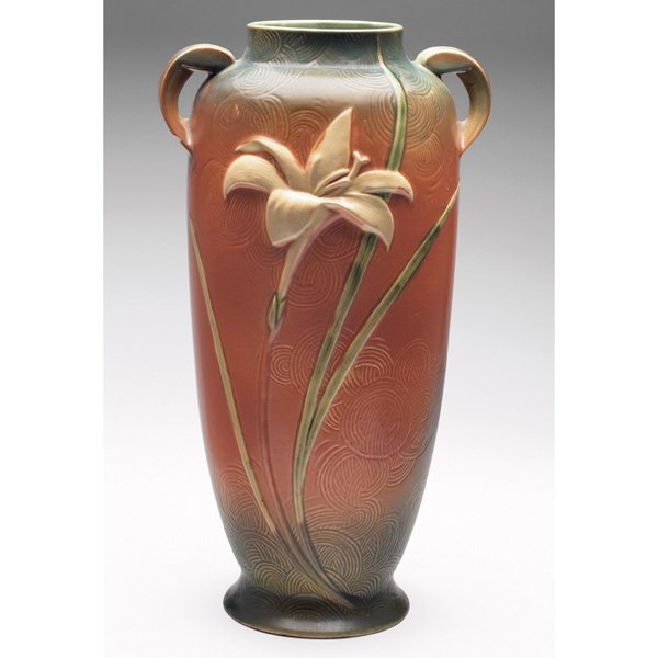 ROSEVILLE POTTERY ZEPHYR LILY EWER VASE REPLICA52 Lots AwayRoseville Bushberry Double Handle Vase, 8 1/4" TallMar 05, 2026Vase, Weller LouwelsaMar 21, 2026Roseville Ferella Double Handle Vase 1931, 8 1/4" TallMar 05, 2026Roseville Sunflower Double Handle Vase, 5" TallMar 05, 2026Rookwood Vase #614D 1931 Elizabeth Lincoln, 10 1/2" TallMar 05, 2026Roseville Sunflower Double Handle Vase 1930, 5 1/2" TallMar 05, 2026Roseville Luffa Brown Large Vase 689-85 days LeftTwo-Handled Vase, Unmarked Roseville Art PotteryMar 21, 20263 Pieces Roseville Pottery #915 and #130, 5" and 4" TallMar 05, 2026Rookwood Decorated Mat vase, Todd, bold flowers13 hrs LeftRoseville Windsor Double Handle Vase 1936, 9" TallMar 05, 2026Rookwood Double Handle Vase #1746D 1919, 6" TallMar 05, 2026Two Handled Vase, Unmarked Roseville Art Pottery, Falline PatternMar 21, 2026Roseville Pine Cone vase in brown, shape 712-1213 hrs LeftOwens Utopian Ware Vase #942, 6 1/2" TallMar 05, 2026