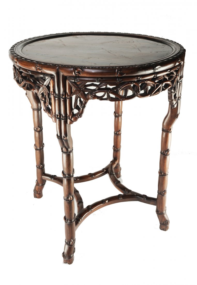 SoldChinese antique rosewood table with marble insetChinese antique rosewood round table with fine marble inset at censer, 22.75"Hx23.5"diaSee Sold Price