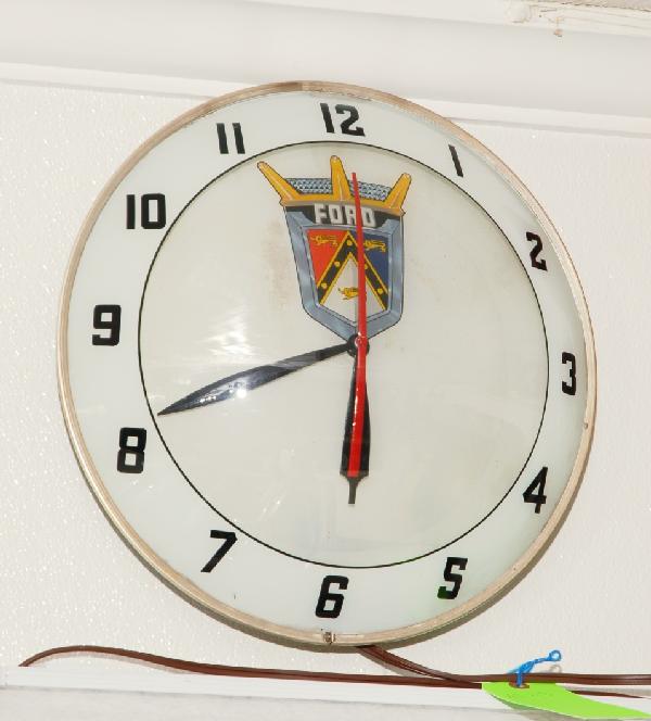 Round Ford wall clock, plain face with Ford shield