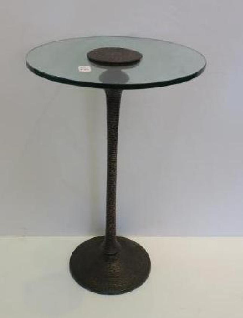 Round Glass and Metal Side Table: