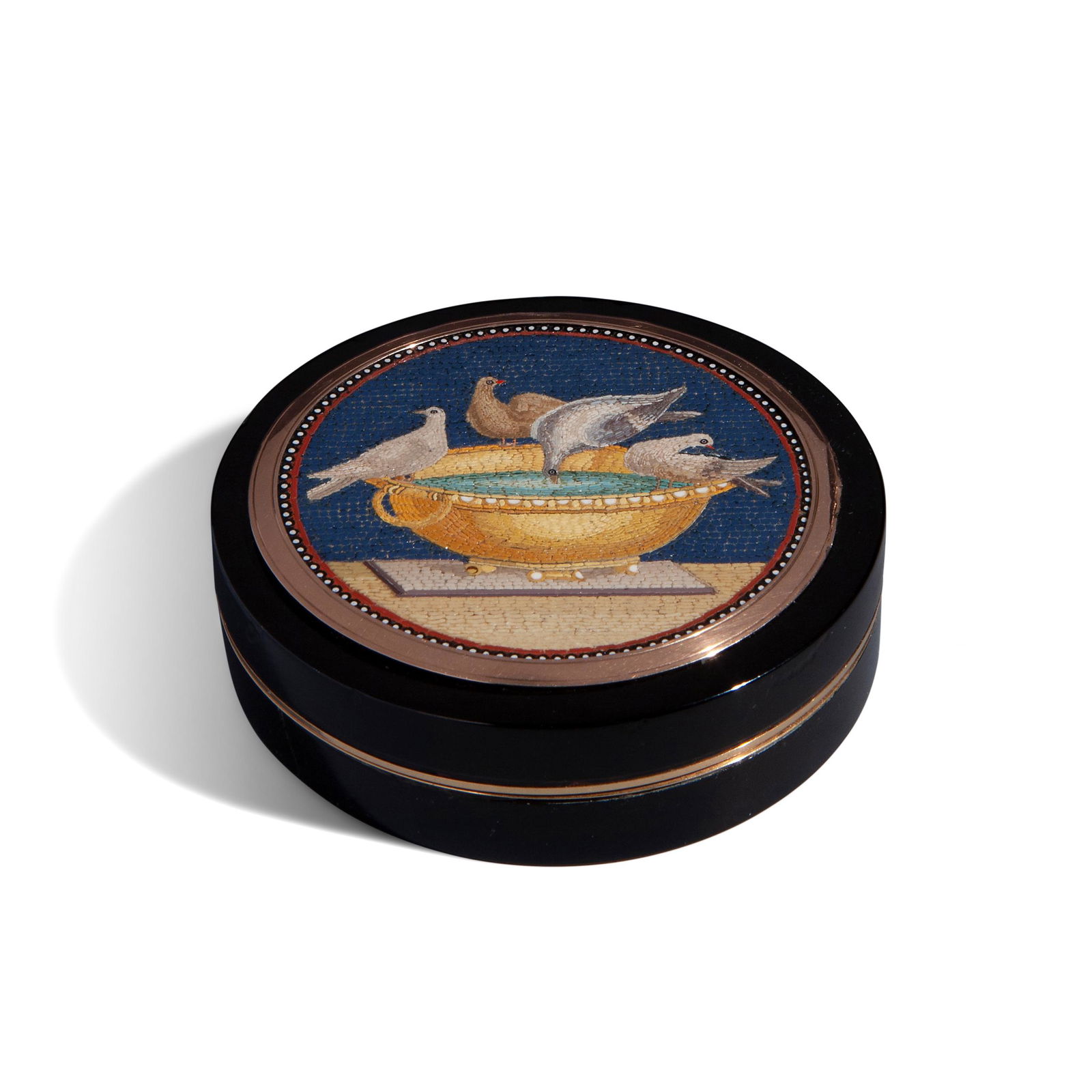 Round gold and tortoiseshell box, with Plinio’s doves