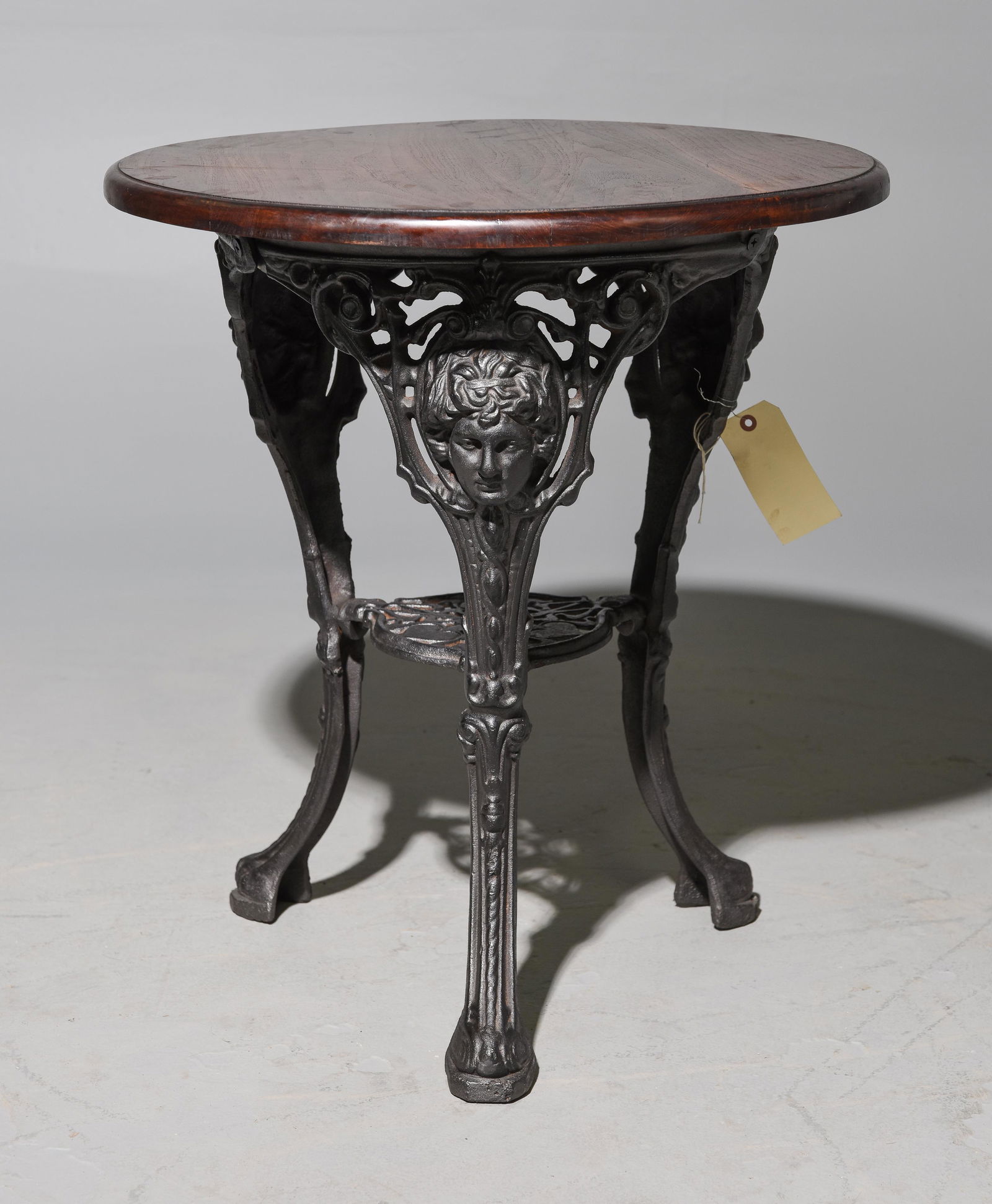 ENGLISH MAHOGANY-TOP CAST IRON PUB TABLE