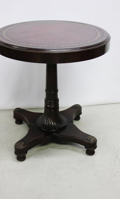 REGENCY STYLE FIGURED ROSEWOOD OCCASIONAL TABLE1 day LeftCharak Furniture Co Leather Top Side Table6 days LeftRound Leather Top Pedestal Table2 hrs LeftAmerican Empire Style Pedestal Table6 days LeftOval mahogany empire center table, table is 45.5" by 34", height is 29"Mar 09, 2026French Leather and Iron Occasional TableMar 11, 2026British Oak Barley Twist Occasional Table2 days LeftA Lacquerware Side TableMar 07, 2026Antique Ebenezer Smith Mahogany Occasional TableMar 07, 2026Henredon Leather Top Occasional Table Mahogany Tack Head TrimMar 14, 2026VINTAGE PARQUETRY INLAID TOP SIDE TABLEMar 08, 2026Oval Side Table.Mar 10, 2026Maitland Smith Regency Leather Wrapped Center Table with Brass Edge2 days LeftVintage Wood Round Coffee TableMar 16, 2026Marble Top Side Table6 days LeftMaitland Smith Georgian Style Occasional Table with Leather Top601 Lots Away