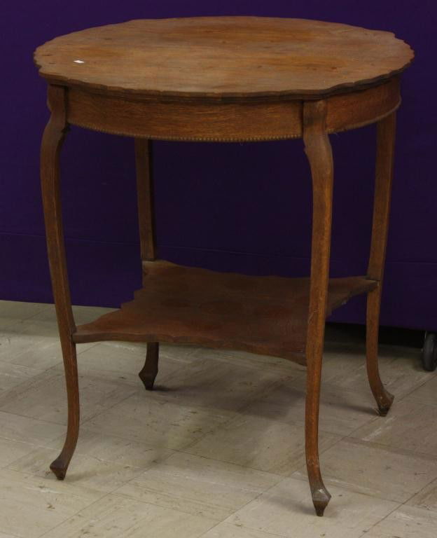 Round Oak Side Table with Beaded Trim