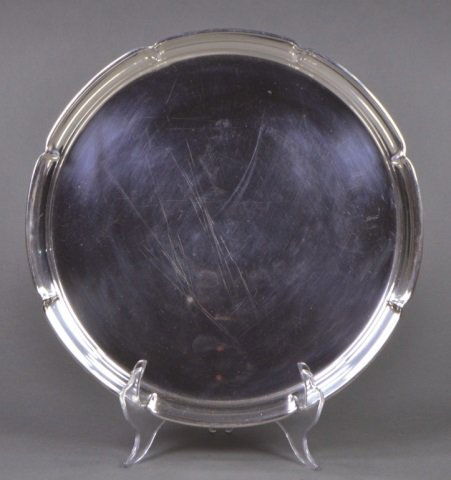 SoldSTERLING. Tiffany & Co. Sterling Tray.Tiffany & Co. round sterling serving tray. Stamped to underside, "Tiffany & Co Sterling Silver 925". Total approx. weight of tray is 27.07 troy oz (gross). From an E 66th St, ManhattSee Sold Price