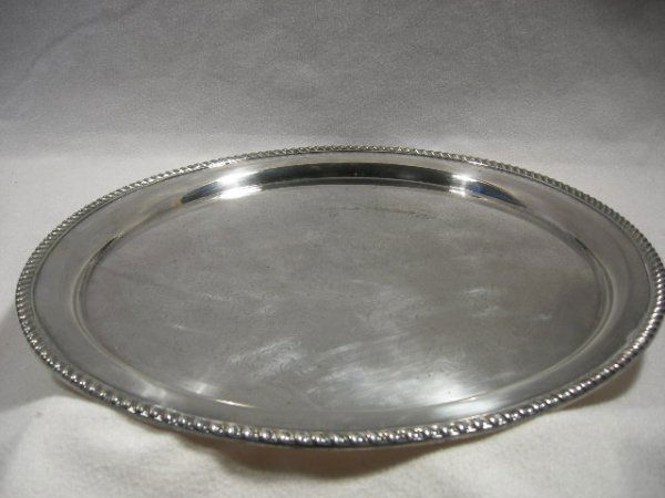 SoldVintage Silver Plated Round Serving Tray Platter 12".This tray is in overall excellent condition with little wear seen excluding some light scratching. It has an older, unpolished patina and should polish nicely. It is about 12 inches in diameter. ThereSee Sold Price