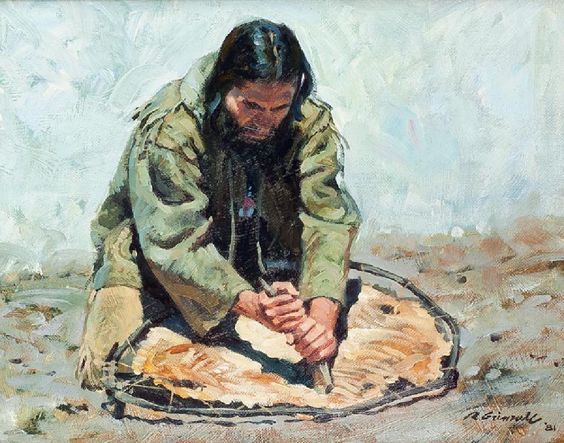 SoldTrapper In Taos by Roy GrinnellImage is 20" x 14.5" on a 2" wooden frame that measures 24" x 19". A painter of western historical themes, he was born in Santa Barbara, California and in 1978 moved to Santa Fe, New Mexico. He graduaSee Sold Price