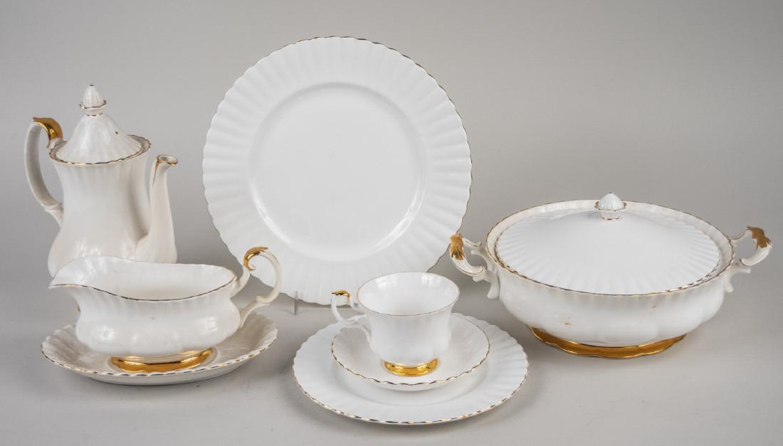 Lot of Porcelain Plates24 mins Left(84) ENGLISH SPODE 'INDIAN TREE' PORCELAIN DINNER SERVICEFeb 21, 2026Set Haviland Porcelain Dinner WareMar 10, 202623 Piece Winterling Bavaria White & Gold Porcelain Coffee ServiceCollection of Royal Worcester Royal Garden PatternRosenthal, a tea service for ten people. Consisting of ten teacups with matching saucers.Royal Crown Derby Porcelain Dinner Service, 153Mar 12, 202697-PIECE SERVICE SPANISH BLOCK "BIDASOA" PATTERN GILT-DECORATED WHITE CHINA TABLEWARE,24 mins LeftRoyal Cauldon Gilt Decorated Porcelain Part Service246 Lots AwayNymphenburg Porcelain Partial Dinner Service, 26Mar 12, 2026122-PIECE SERVICE ROYAL CROWN DERBY "BALI" PATTERN BONE CHINA TABLEWARE. Including 16 dinner plates,24 mins LeftEleven Piece Meissen Porcelain Swan Service Tableware Group16 hrs LeftWedgwood Porcelain Part Service in the Black 'Florentine' Pattern109 Lots AwayWedgwood "Whitehall" Part Dinner Service, 69 Pcs.Mar 12, 2026Royal Albert Bone China Dinnerware Set with Gold Trim – Plates, Cups & Serving Pieces, England1 hr LeftRoyal Crown Derby "Green Derby Panel" service.Feb 24, 2026