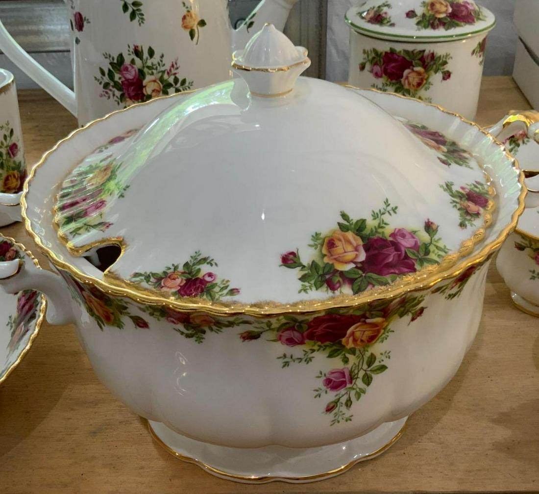 Sold59 Pcs Royal Albert "Old Country Rose" DinnerwareDinner plate: 10-1/2" diameter. Some loss to gold rim. Minor scratch marks to plates. Vegetable bowl without lid.See Sold Price