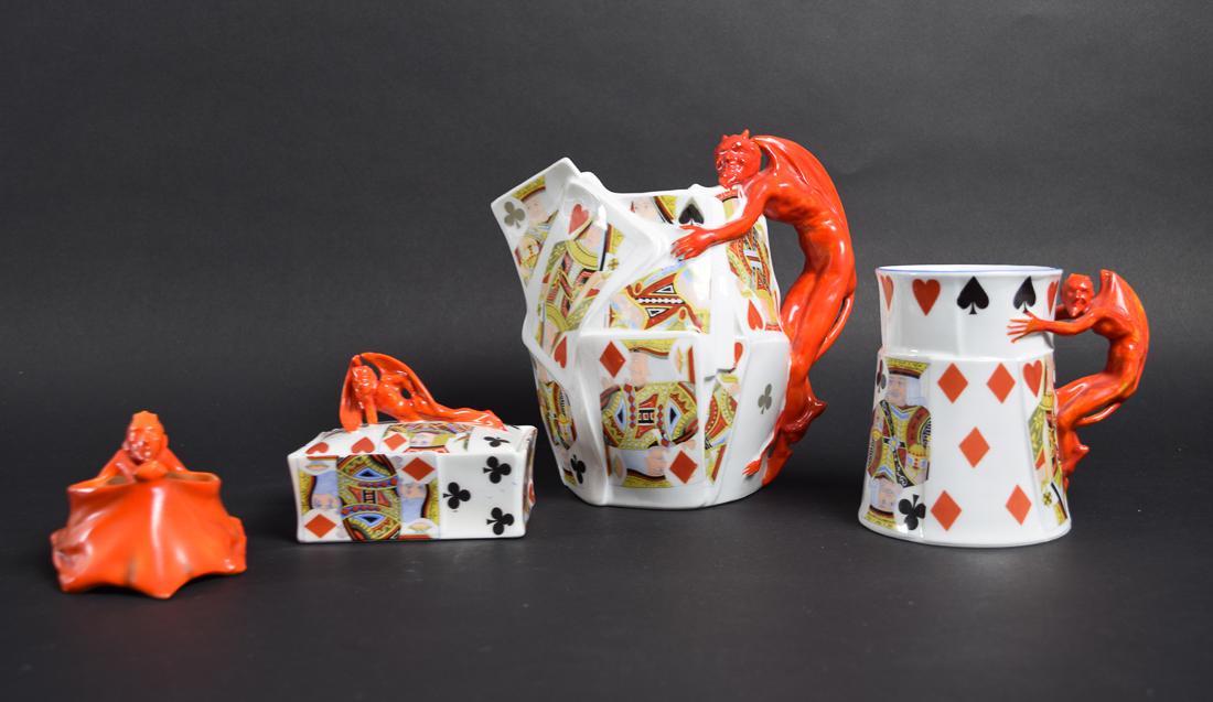 Royal Bayreuth Devil Cards Pitcher, Box, Salter, Mug