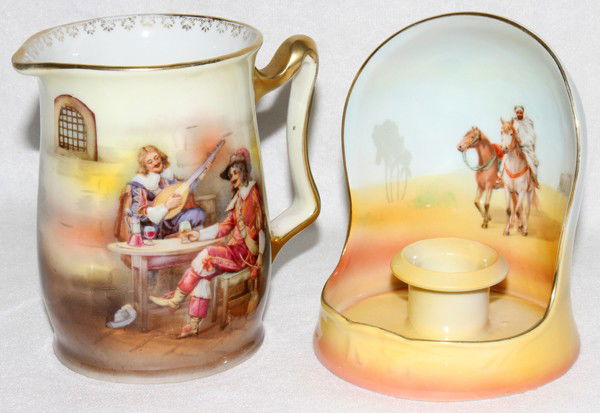 ROYAL BAYREUTH GROUP PITCHER AND CANDLESTICK,