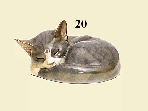 Sold2 Porcelain Figurines of Cats, Rosenthalwhite bodied cat standing (4" tall) and a Royal Copenhagen sleeping cat #1025, 6" across, both excellent.See Sold Price