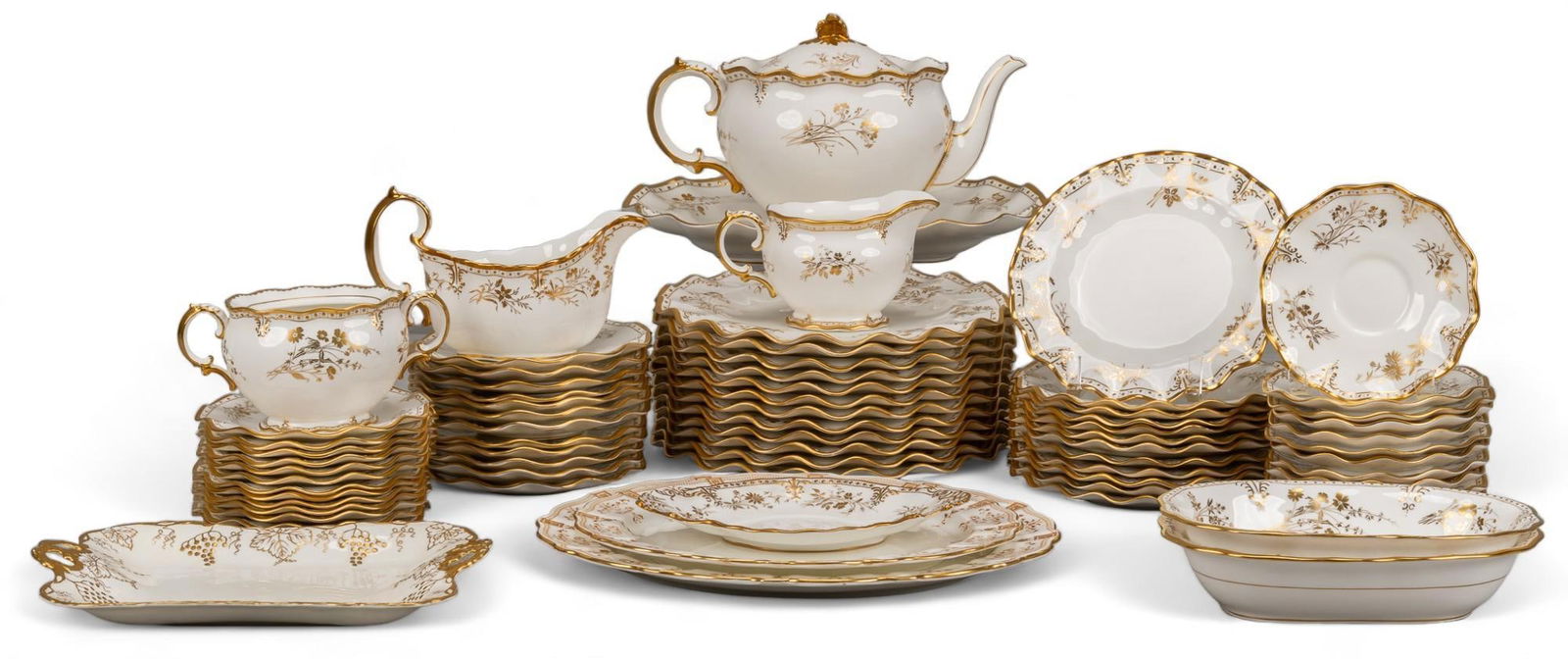 MISC LOT OF ENGLISH PORCELAIN5 days LeftENGLISH GILT-DECORATED PORCELAIN TEA ARTICLES, LOT OF 112 days LeftENGLISH COBALT-DECORATED PORCELAIN FLORAL MOTIF TEA AND OTHER ARTICLES, LOT OF EIGHT2 days LeftRoyal Worcester, England. Complete tea service for seven people in porcelain with floral motifs.Royal Copenhagen Creme Curved tea service for eight people. Mid-20th century.Royal Doulton, England. Twelve Fairfax teacups with saucers and a cream jug in porcelain withRoyal Crown Derby "Vine" Porcelain Tea Service x 6Mar 12, 2026Royal Crown Derby Grenville Part Dinner Service6 days LeftRoyal Crown Derby Porcelain Dinner Service, 153Mar 12, 2026Eight Pieces Royal Crown Derby TablewareMar 12, 2026Aynsley England Porcelain Tea Service for 12 #7892 in Gold DoweryMar 15, 2026Wedgwood "Whitehall" Part Dinner Service, 69 Pcs.Mar 12, 2026An Assembled Royal Crown Derby Old Imari Service for EightMar 13, 2026Nymphenburg Porcelain Partial Dinner Service, 26Mar 12, 2026Herend Queen Victoria tea service for 6 persons,Mar 14, 2026Haviland Limoges Porcelain Part Service, 26 Pcs.Mar 12, 2026