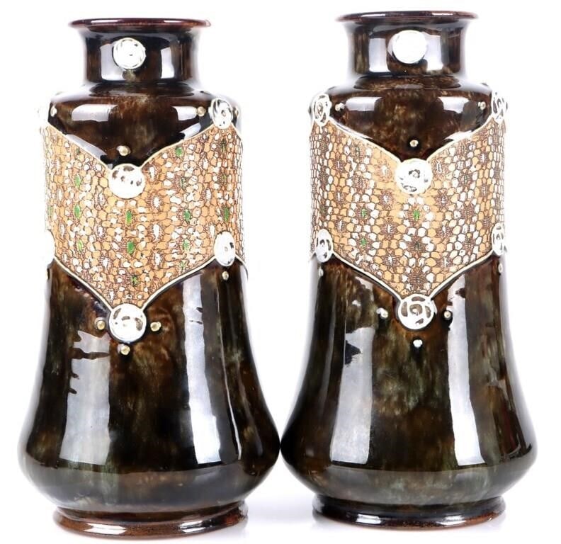 ROYAL DOULTON LAMBETH SLATERS CERAMIC VASES (2)5 days Left2pc Royal Doulton Slaters Patent Gilt VasesMar 10, 2026Pair Vases, Marked Royal Doulton LambethApr 18, 2026Royal Doulton Lambeth Stoneware Vases, Florrie Jones, Pair, circa 1905-1915Mar 15, 2026Pair Pair of Doulton Lambeth & Slaters Stoneware Chine Ware Foo Dog Vases5 days LeftPair Pedestal Vases, Marked Royal Doulton SlatersApr 18, 2026Studio Art Pottery Bottle Vases, PairMar 12, 2026Pair Vases, Marked Royal Doulton SlatersApr 18, 2026Arts & Craft Chinese Bronze Cloisonné Enamel Vase Lamp by Mimi London, Pair3 days LeftA pair of Ming Dynasty Chenghua period red-bodied doucai vases with seaweed pattern10 hrs LeftPair of Doulton Lambeth by Florence Barlow Stoneware Vases5 days LeftA pair of Chinese cloisonne melon-form vases, by Laotianli workshop, late 19th centuryMar 21, 2026A PAIR OF LATER MASON'S IRONSTONE OCTAGONAL SECTION VASES AND COVERS, LATE 19TH CENTURYA pair of Qing Dynasty famille rose flower and bird pattern lucky cylinders5 days LeftA pair of Wedgwood fairyland lustre vases of 'Imps on a Bridge' pattern designed by Daisey Makei...vintage Chinese cloisonné hexagonal miniature vasesMar 23, 2026