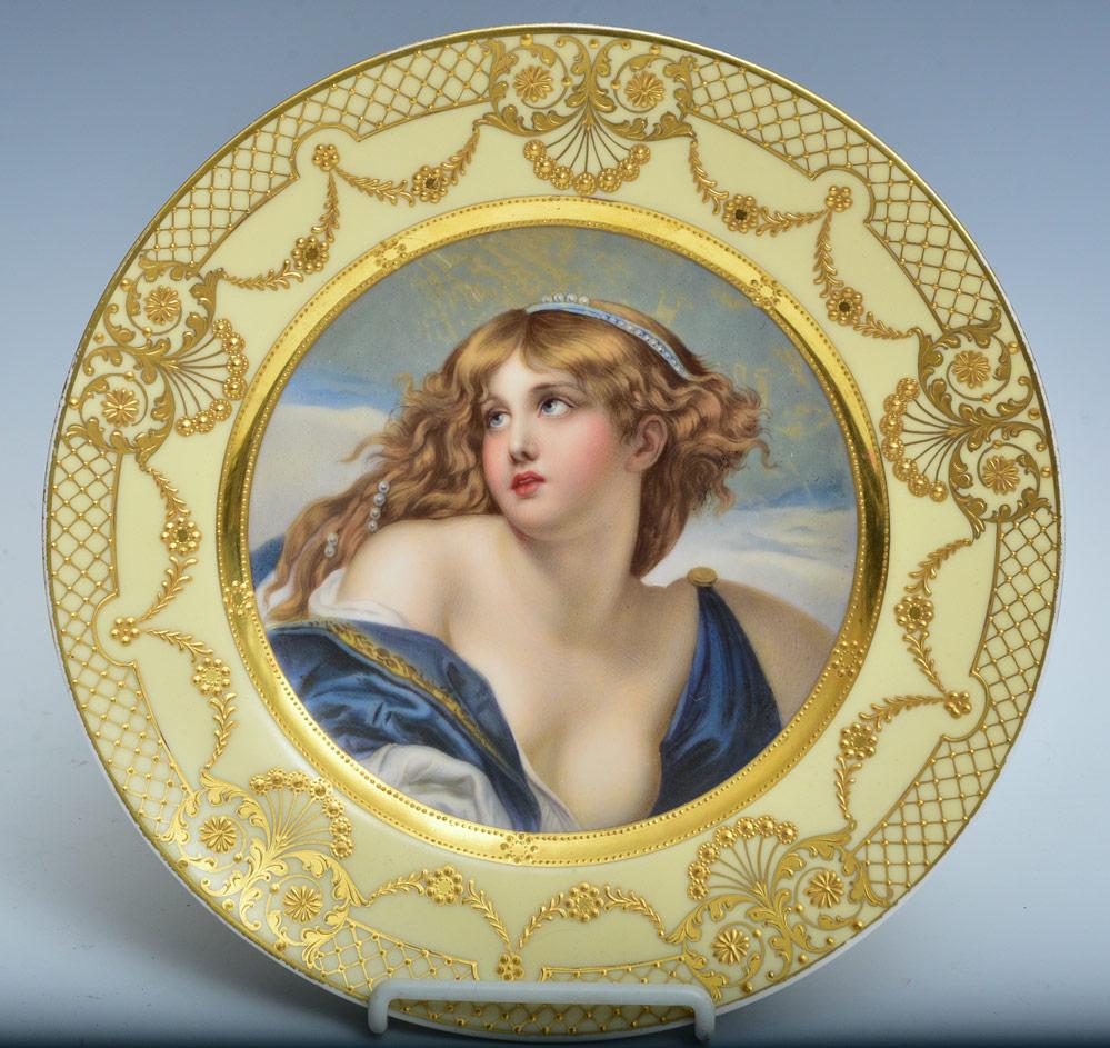 19th C. Royal Vienna Jeweled Hand Painted Portrait Plate