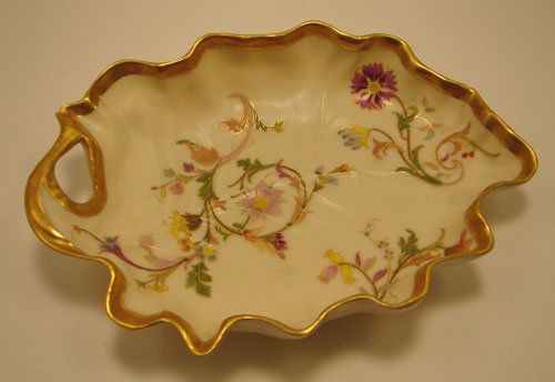 009: Royal Worcester Antique Porcelain Leaf Form Dish