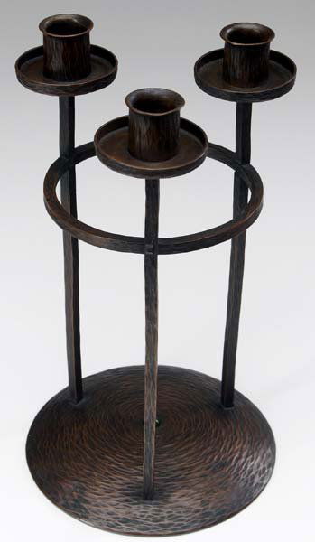 ROYCROFT Hammered copper candelabra with three ste
